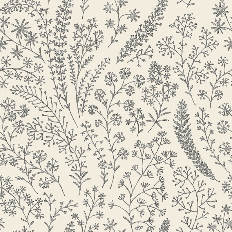 Papel pintado floral lilas estilo clásico escandinavo en azul y blanco de Borastapeter, colección Alla Tiders Hus. Calidad tejido no-tejido lavable, medidas: 53 cm x 10 m.