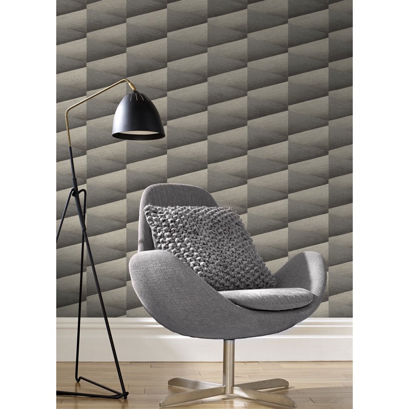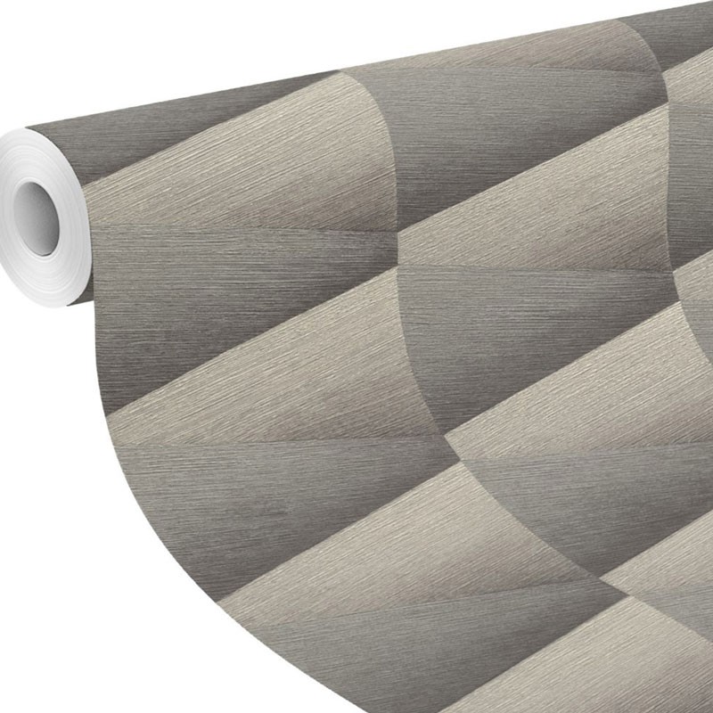 Papel pintado conos 3D grises tonos modernos de Rasch, colección Composition. Calidad vinílico lavable, medidas: 53 cm x 10 metros