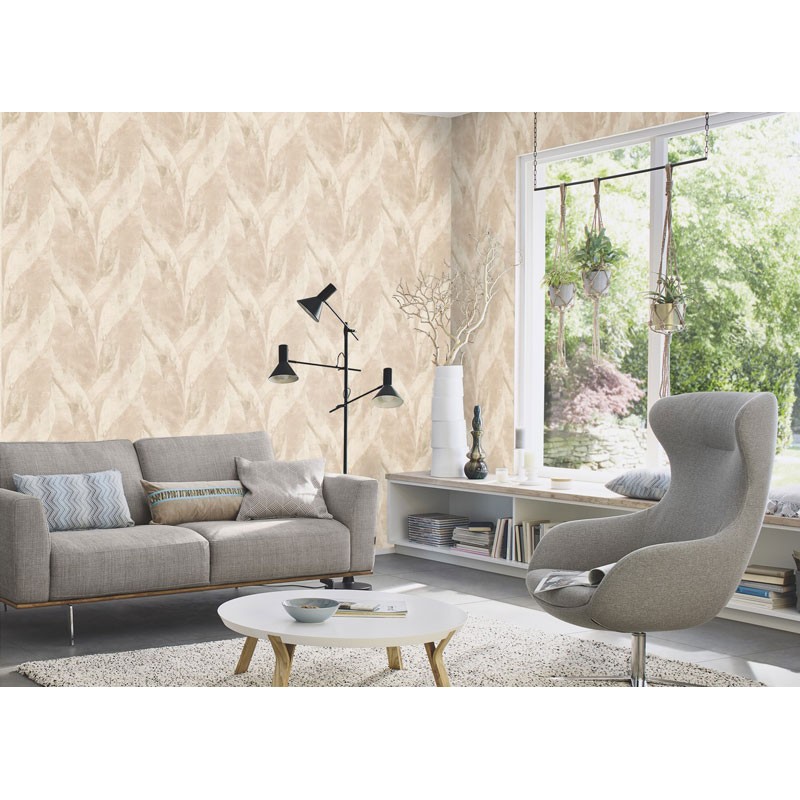 Papel pintado hormigón gris con hojas grandes entrelazadas de Rasch, colección Concrete. Calidad vinílico lavable, medidas: 53 cm x 10 metros