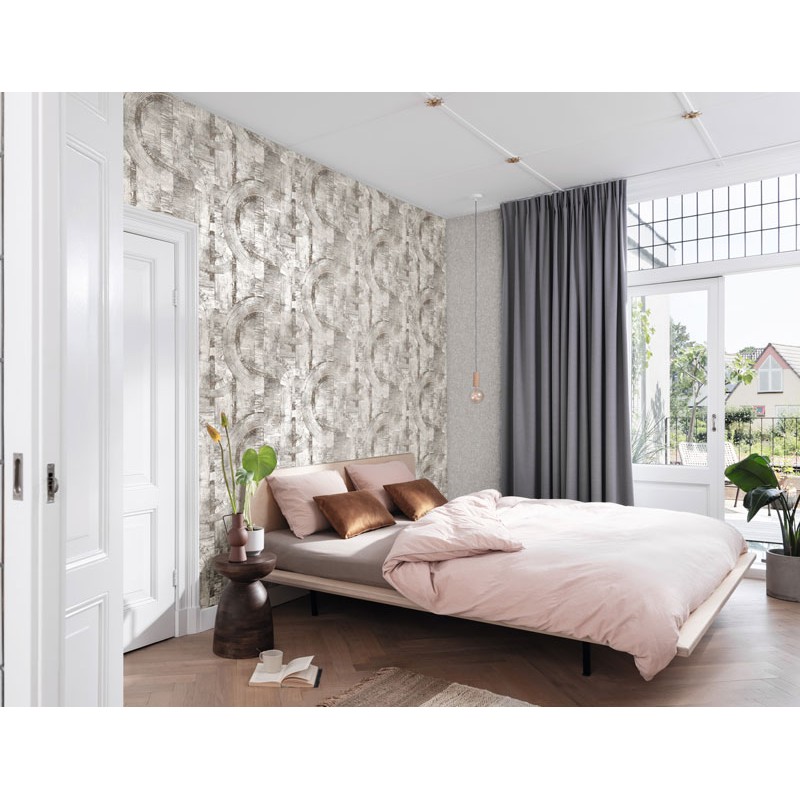 Papel pintado estucado abstracto de yeso con textura gris. Vendido por rollo, medidas: 53 cm x 10 metros