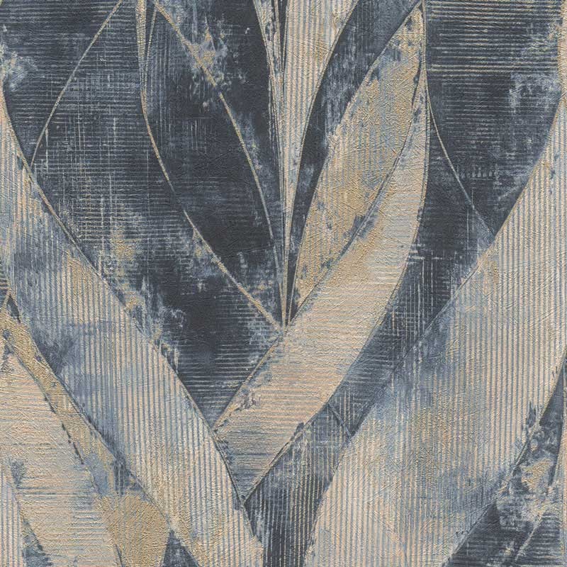 Papel pintado floral azul con texturas efecto yeso hormigón. Vendido por rollo, medidas: 53 cm x 10 metros