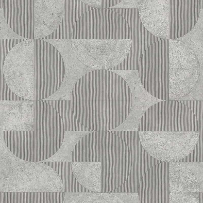 Papel pintado círculos gris sobre pared de hormigón. Vendido por rollo, medidas: 53 cm x 10 metros