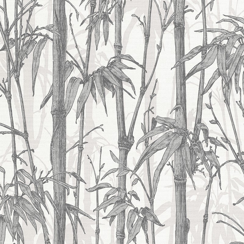 Papel pintado bambú oriental textil beige y gris suave de Rasch, colección Florentine. Calidad vinílico lavable, medidas: 53 cm x 10 metros
