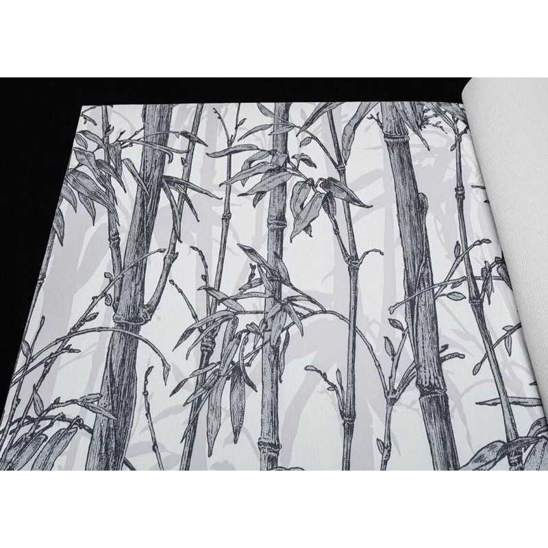 Papel pintado bambú oriental blanco y verde natural de Rasch, colección Florentine. Calidad vinílico lavable, medidas: 53 cm x 10 metros