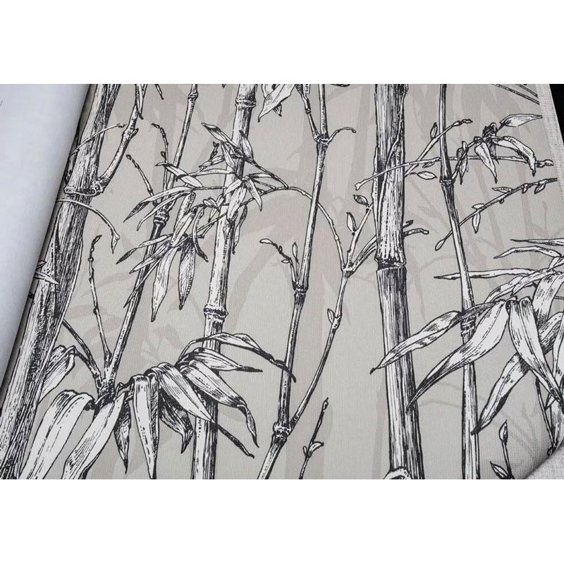 Papel pintado bambú oriental gris plata y blanco de Rasch, colección Florentine. Calidad vinílico lavable, medidas: 53 cm x 10 metros
