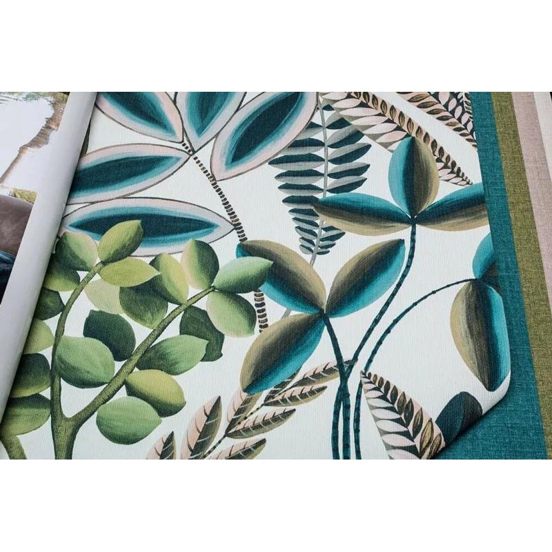 Papel pintado floral moderno fantasía verde oliva de Rasch, colección Florentine. Calidad vinílico lavable, medidas: 53 cm x 10 metros