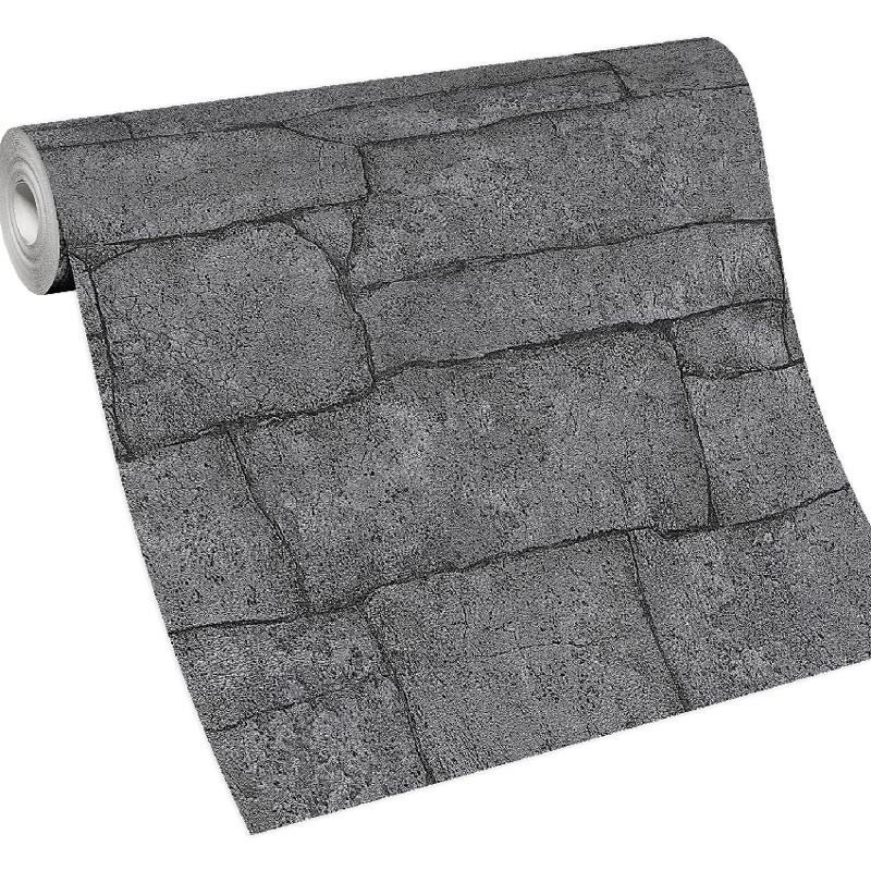 Papel pintado muro piedra natural gris oscuro marca Erismann, colección Focus. Calidad tejido no-tejido lavable, medidas: 53 cm x 10 m.
