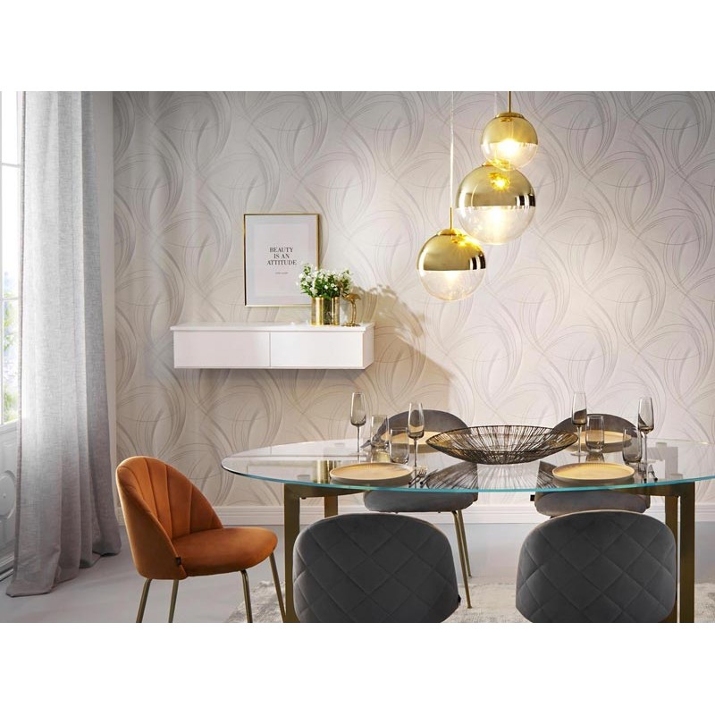 Papel pintado elegante contemporáneo beige y dorado marca Erismann, colección Fashion For Walls. Calidad tejido no-tejido lavable, medidas: 53 cm x 10 m.