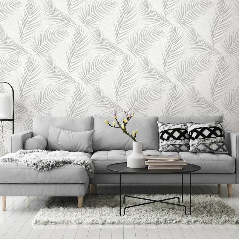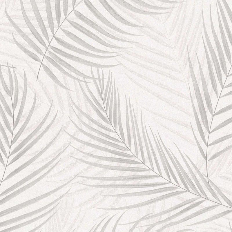 Papel pintado floral hojas de palma crema con brillo marca Erismann, colección Fashion For Walls. Calidad tejido no-tejido lavable, medidas: 53 cm x 10 m.