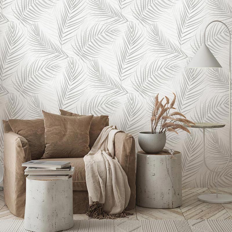 Papel pintado floral hojas de palma crema con brillo