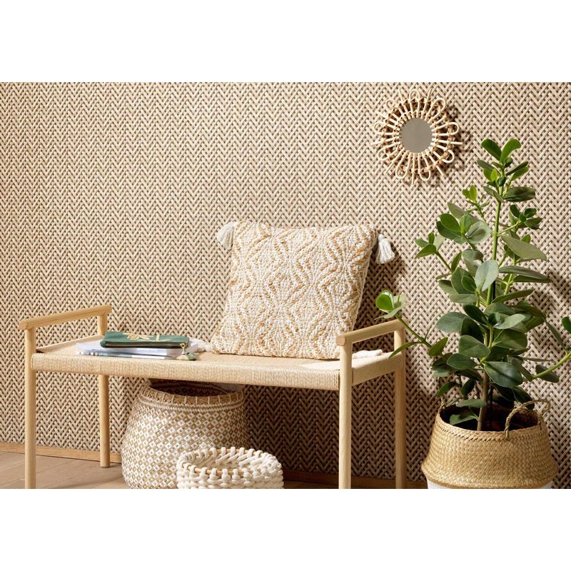 Papel pintado efecto mimbre marrón marca Erismann, colección Code Nature. Calidad tejido no-tejido lavable, medidas: 53 cm x 10 m.