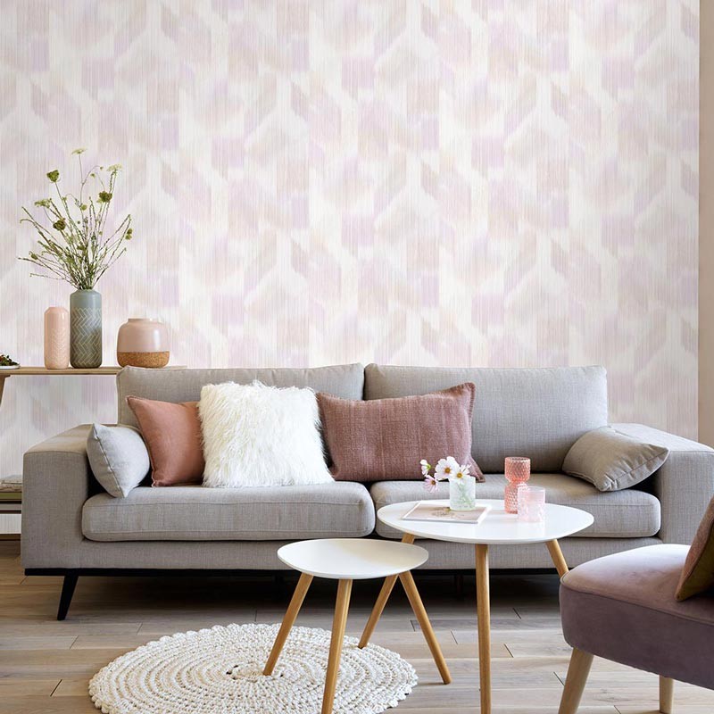 Papel pintado geométrico abstracto rosa escandinavo marca Erismann, colección Charisma. Calidad tejido no-tejido lavable, medidas: 53 cm x 10 m.