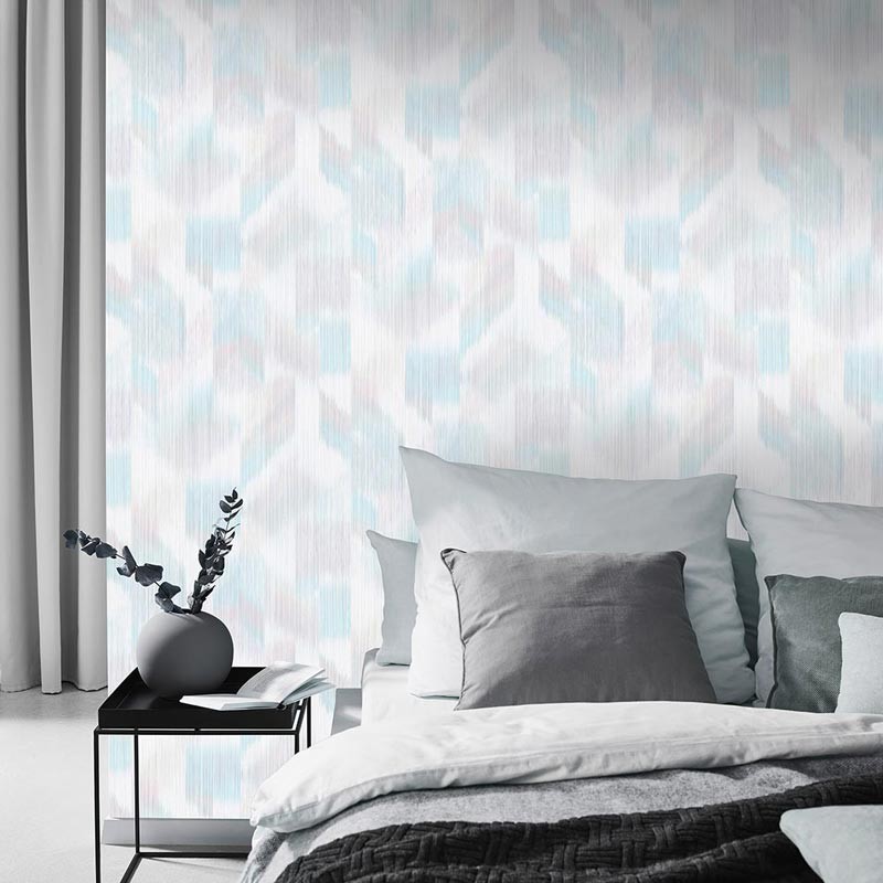 Papel pintado abstracto pastel rosa y turquesa marca Erismann, colección Charisma. Calidad tejido no-tejido lavable, medidas: 53 cm x 10 m.