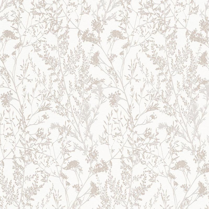 Papel pintado nórdico filigranas silvestres beige marca Erismann, colección Charisma. Calidad tejido no-tejido lavable, medidas: 53 cm x 10 m.