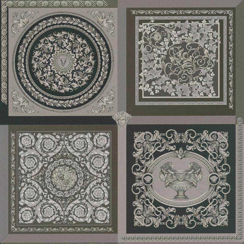 Papel pintado Versace orfebrería barroca gris y dorado Versace de gama alta, calidad vinílico y lavable. Medidas: 70 cm x 10 metros