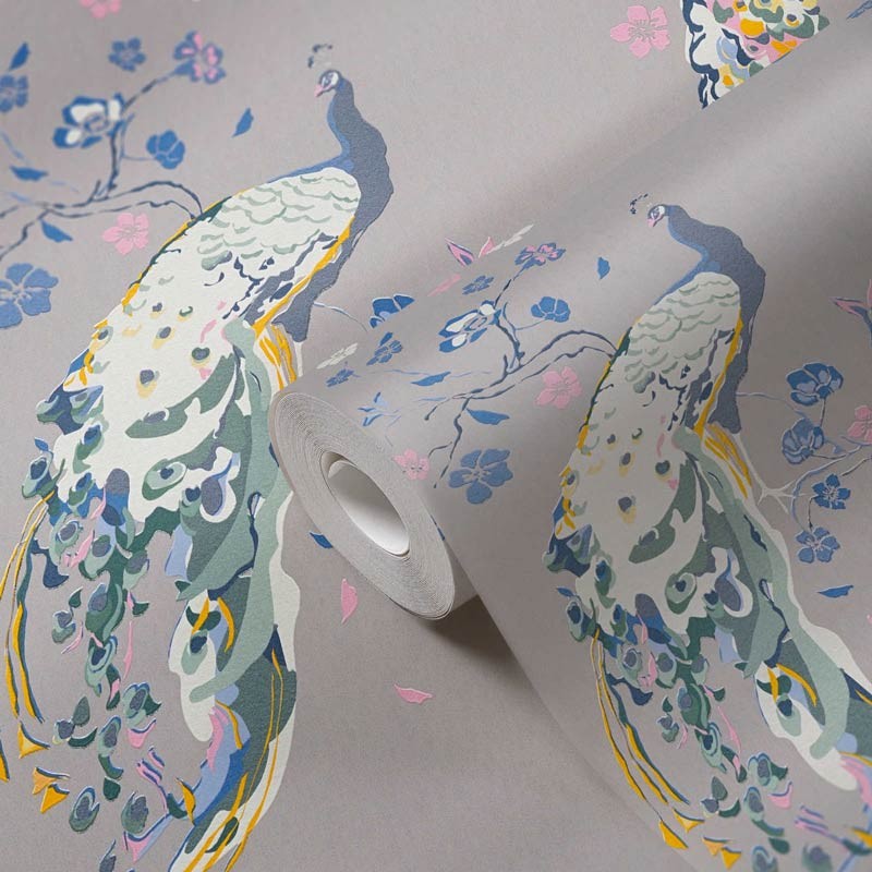 Estilo decorativo que se adapta a distintos espacios del hogar.. Papel Pintado pavos reales y flores efecto brillo azul As Creation House Of Turnowsky 389063.