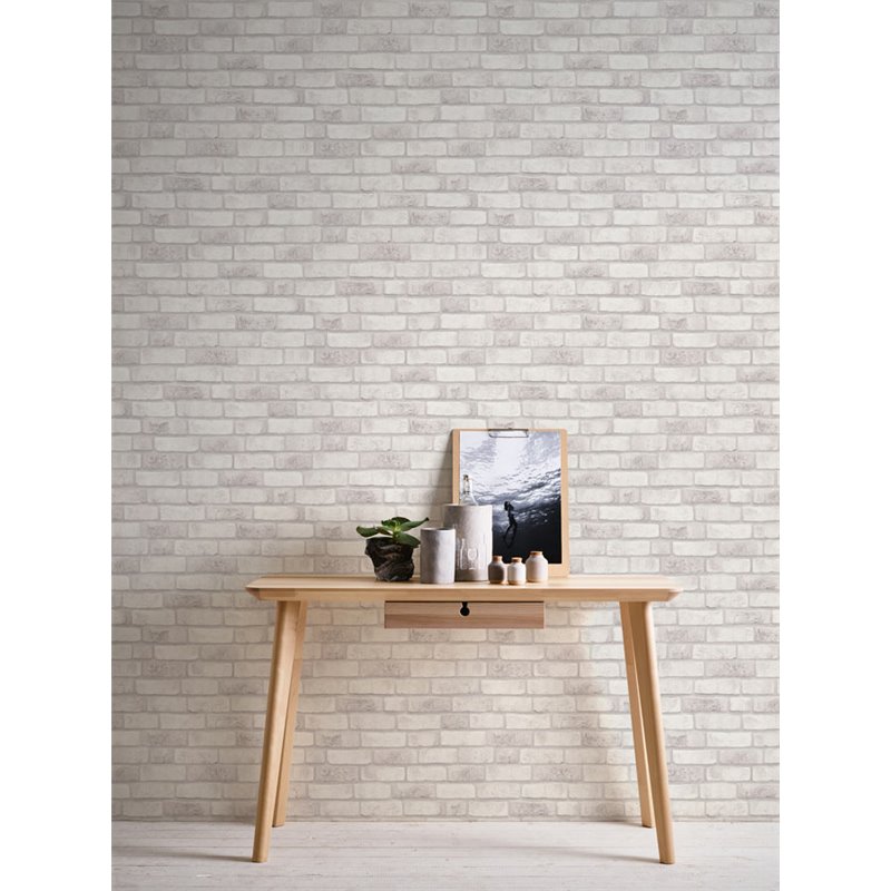 Con estética atemporal, papel pintado ladrillo blanco industrial, ideal para transformar cualquier espacio con estilo. 388144 BRICK & STONES.
