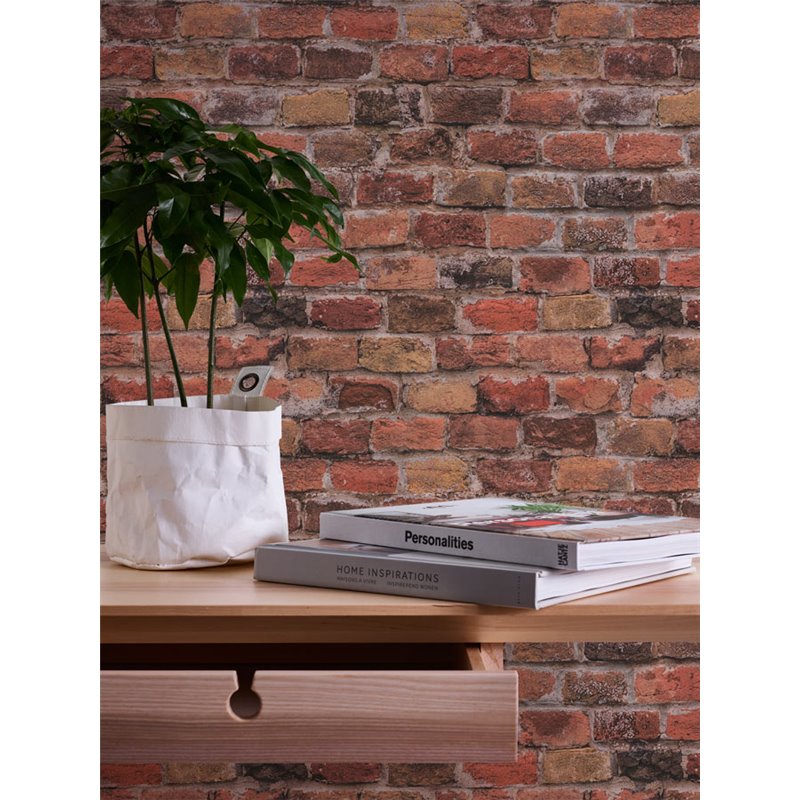 Con todo el realismo, papel pintado ladrillo marrón rústico, ideal para transformar cualquier espacio con estilo. 388142 BRICK & STONES.