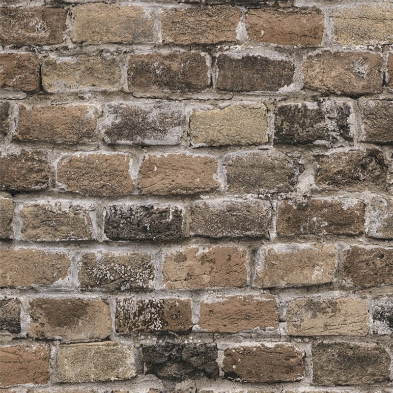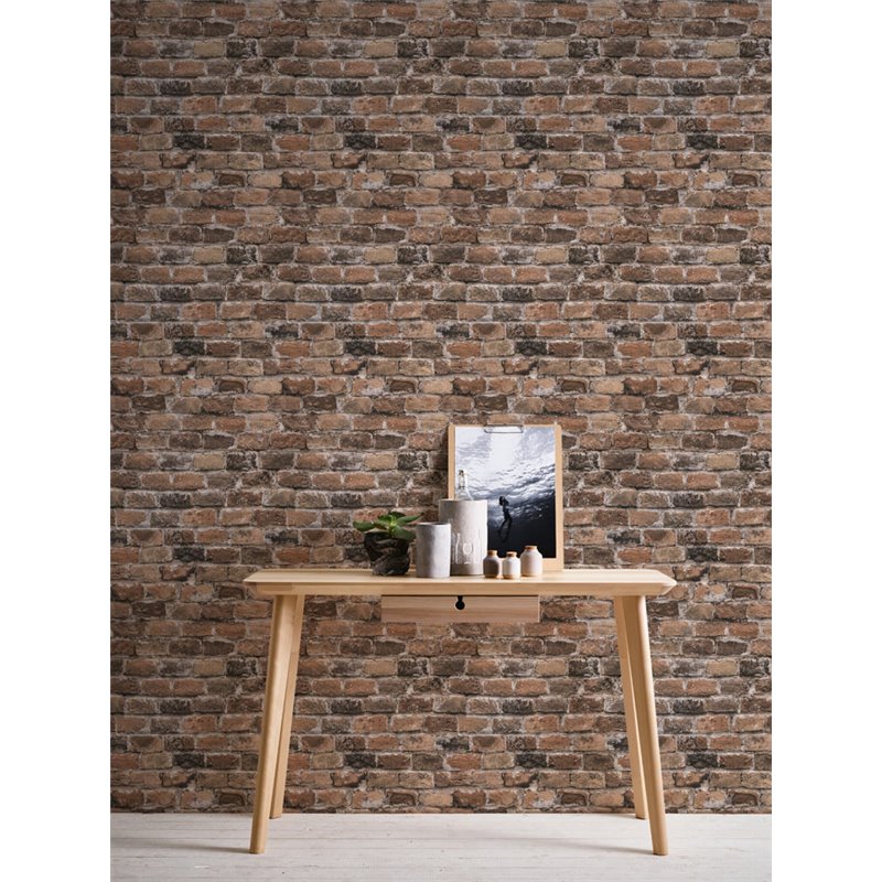 Con todo el realismo, papel pintado ladrillo marrón rústico, ideal para transformar cualquier espacio con estilo. 388142 BRICK & STONES.