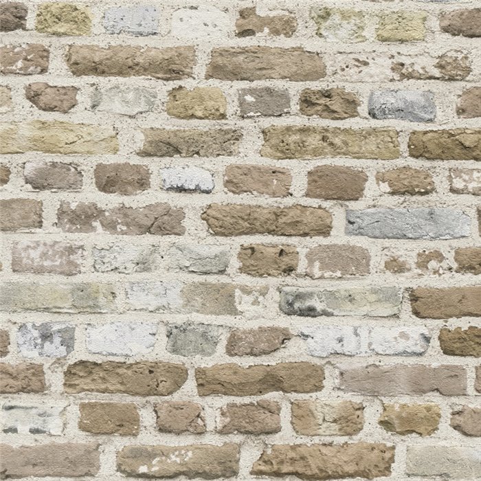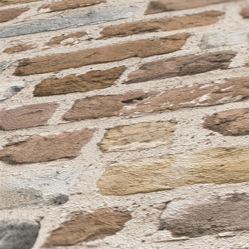 Diseño realista con papel pintado ladrillo marrón de piedra, ideal para transformar cualquier espacio con estilo. 388293 BRICK & STONES.