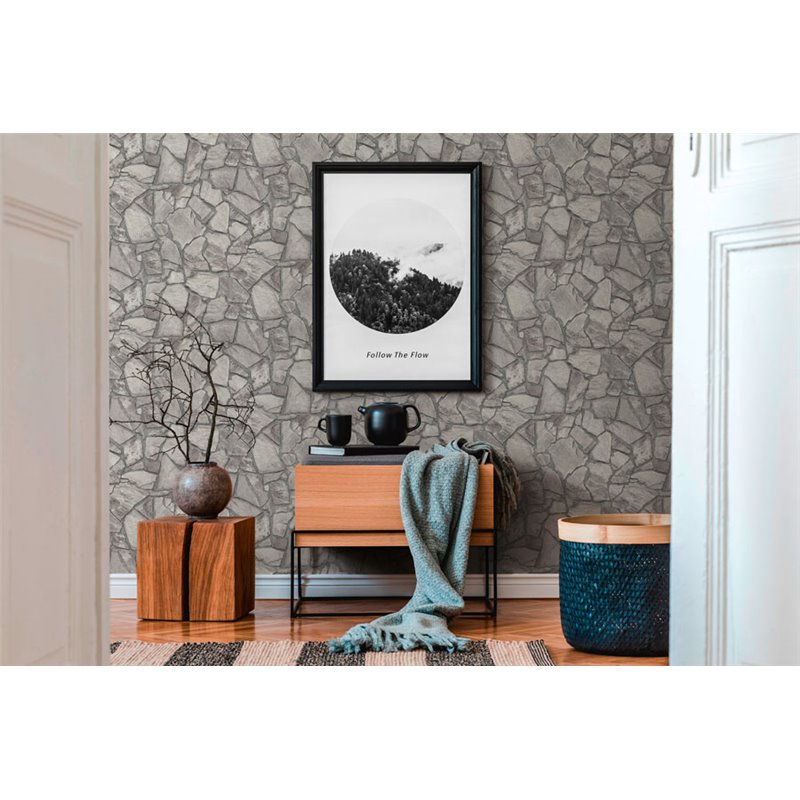 Papel Pintado pared piedras naturales gris oscuro, Diseño pensado para ambientes acogedores y contemporáneos. As Creation Brick & Stones 389367.