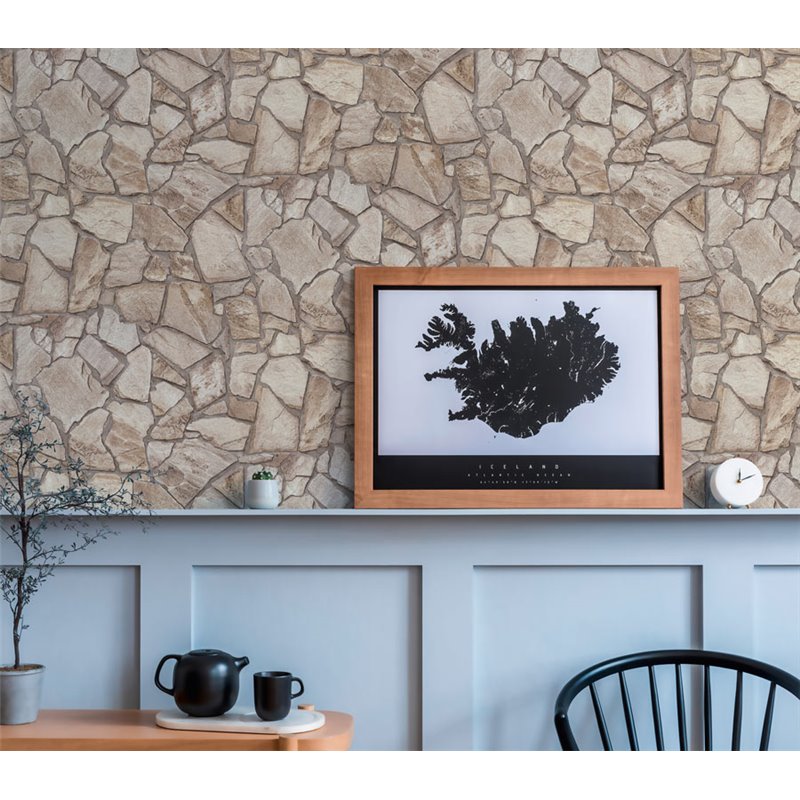 Papel Pintado rústico efecto muro piedras naturales, Estilo decorativo que se adapta a distintos espacios del hogar. As Creation Brick & Stones 389343.
