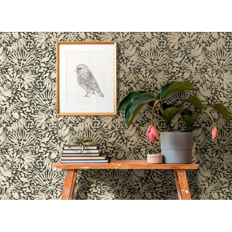 Estilo decorativo que se adapta a distintos espacios del hogar.. Papel Pintado estampado floral verde y dorado As Creation Bos 388311.