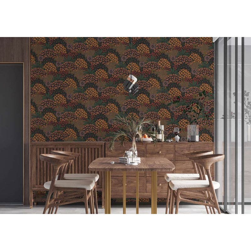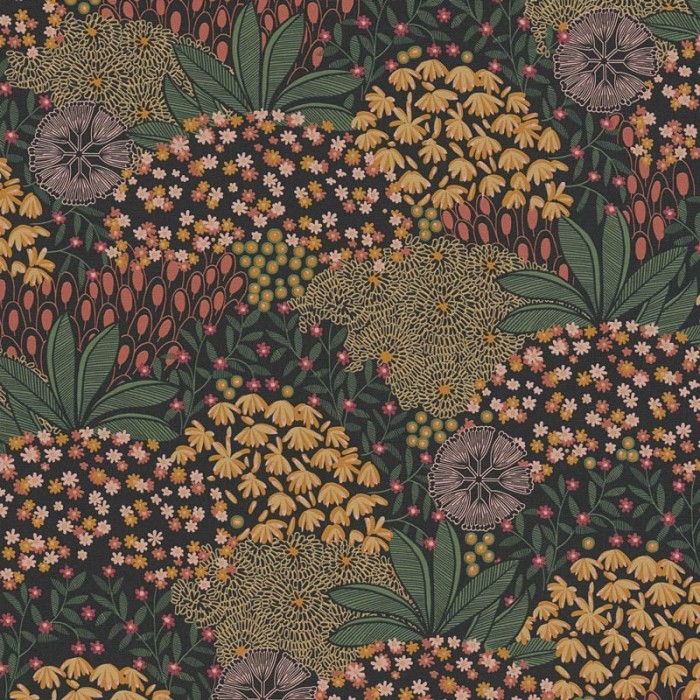Papel Pintado florecillas campo verde amarillo. Ideal para lograr estilo nórdico y diseño fresco. Papeldecor 2-5607
