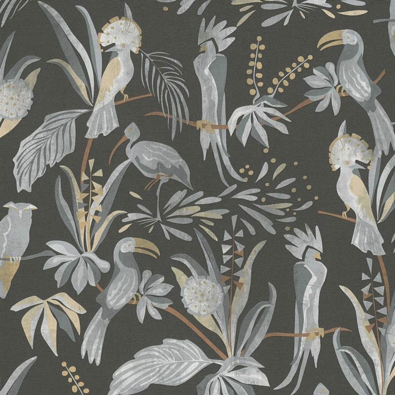 Papel Pintado jungla aves negro silvestres. Perfecto si buscas estilo natural y paredes con vida. Papeldecor 2-5618