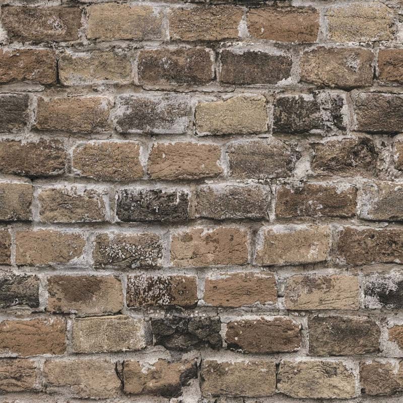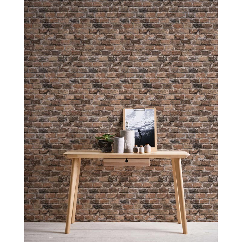 Efecto natural en papel pintado ladrillo marrón rústico, ideal para transformar cualquier espacio con estilo. Papeldecor 2-5646.