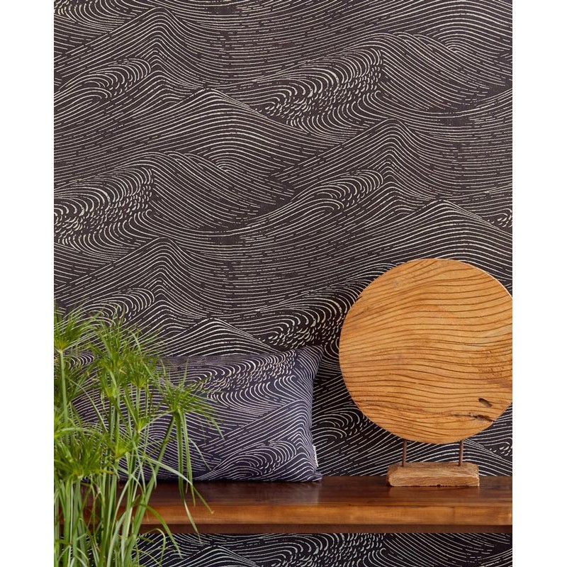 Papel pintado ondas japonesas metalizadas sutil de Eijffinger, colección Enso. Medidas: 52 cm x 10 m. Papel de pared tejido no tejido y lavable.