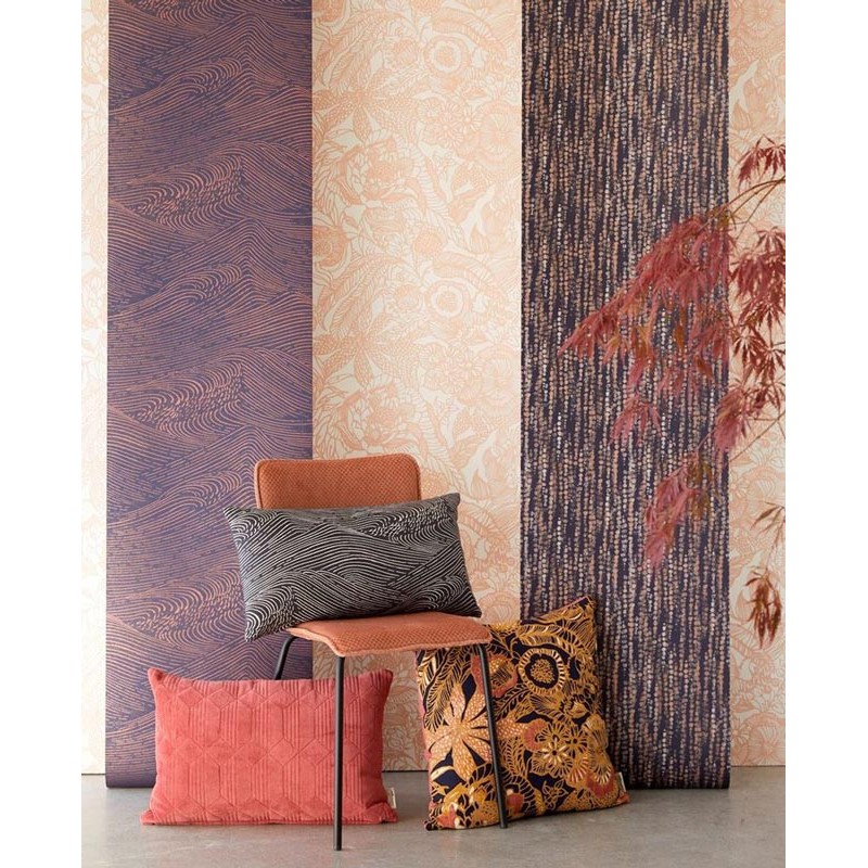 Papel pintado ondas japonesas metalizadas sutil de Eijffinger, colección Enso. Medidas: 52 cm x 10 m. Papel de pared tejido no tejido y lavable.