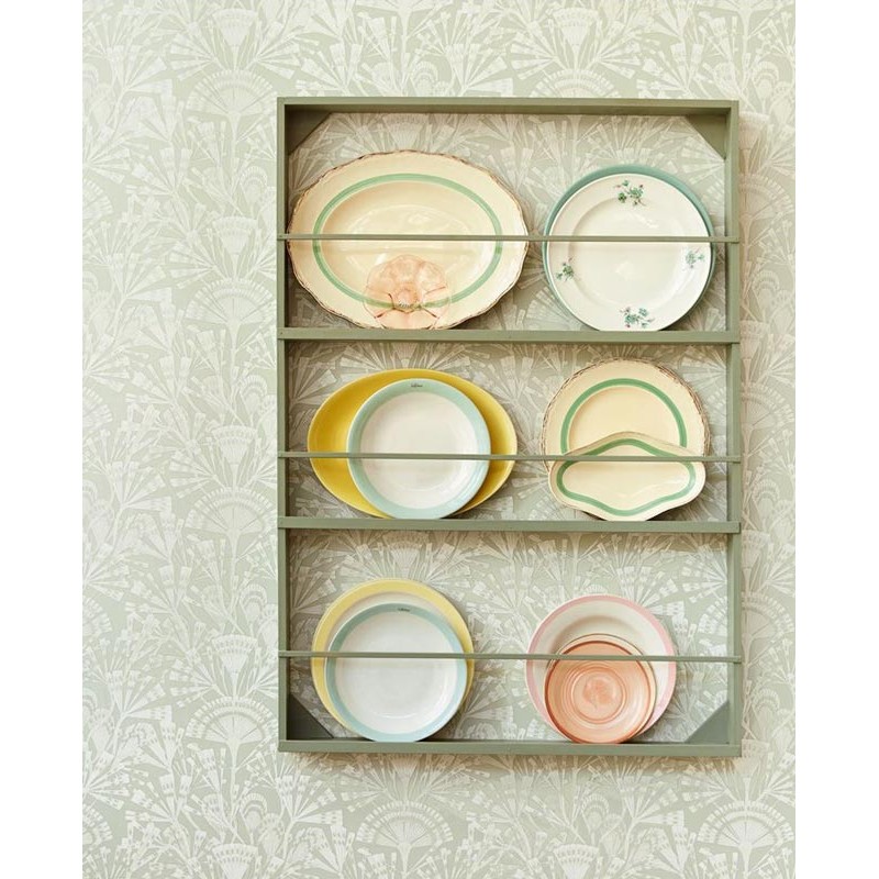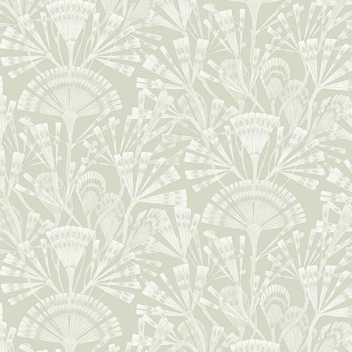 Papel pintado abanicos retro dorado lila de Eijffinger, colección Geonature. Medidas: 52 cm x 10 m. Papel de pared tejido no tejido y lavable.