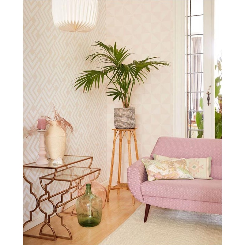 Papel pintado cuadros triángulos nórdico rosa pastel