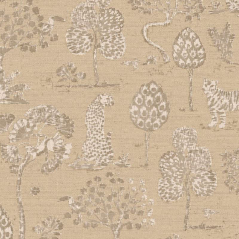 Papel pintado paisaje exótico animales marrón de Eijffinger, colección Oasis. Medidas: 52 cm x 10 m. Papel de pared tejido no tejido y lavable.