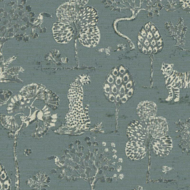 Papel pintado toile de jouy tropical beige arena de Eijffinger, colección Oasis. Medidas: 52 cm x 10 m. Papel de pared tejido no tejido y lavable.