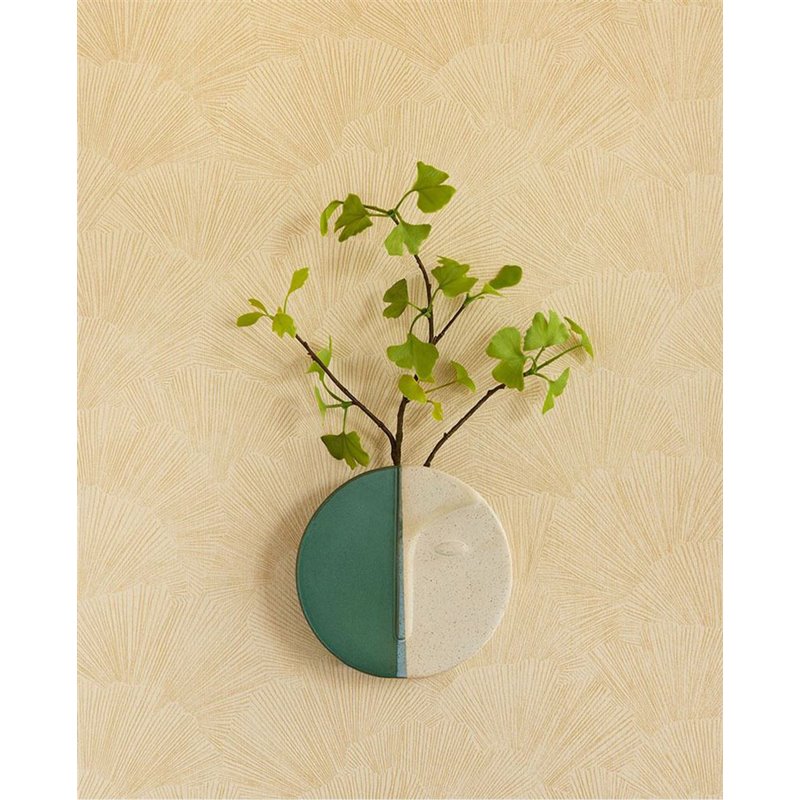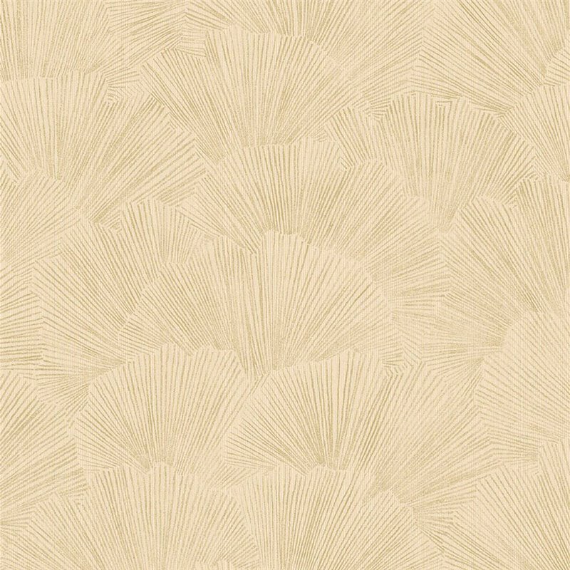 Papel pintado hojas ginkgo minimalista beige de Eijffinger, colección Oasis. Medidas: 52 cm x 10 m. Papel de pared tejido no tejido y lavable.