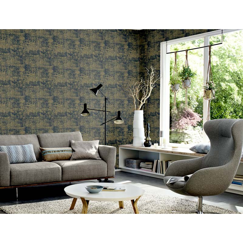 Papel Pintado azul y dorado abstracto de Rasch. Calidad tejido no-tejido lavable, medidas: 53 cm x 10 m.