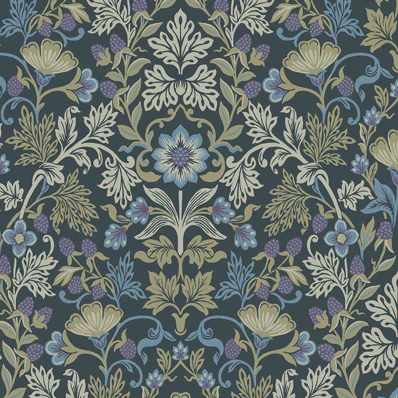 Papel pintado floral clásico turquesa de Eijffinger, colección Posy. Medidas: 52 cm x 10 m. Papel de pared tejido no tejido y lavable.
