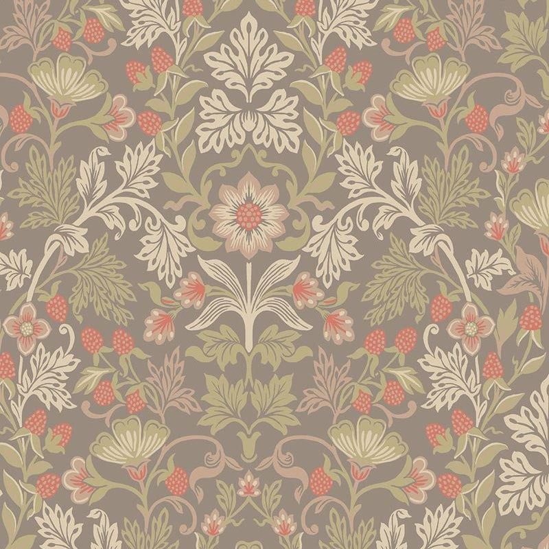 Papel pintado floral retro clásico marrón de Eijffinger, colección Posy. Medidas: 52 cm x 10 m. Papel de pared tejido no tejido y lavable.