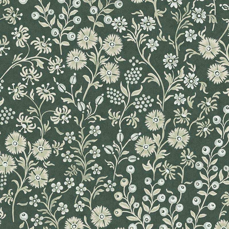 Papel pintado flores pequeñas verde romántico de Eijffinger, colección Posy. Medidas: 52 cm x 10 m. Papel de pared tejido no tejido y lavable.