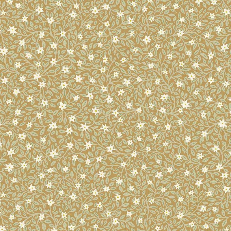 Papel pintado florecillas dispersas amarillo ocre de Eijffinger, colección Posy. Medidas: 52 cm x 10 m. Papel de pared tejido no tejido y lavable.