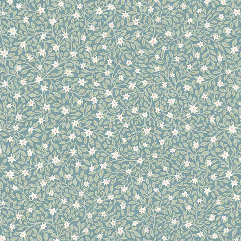 Papel pintado flores pequeñas azul verde de Eijffinger, colección Posy. Medidas: 52 cm x 10 m. Papel de pared tejido no tejido y lavable.