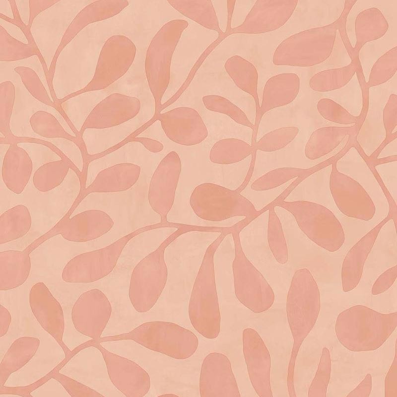 Papel pintado hojas acuarela rosado
