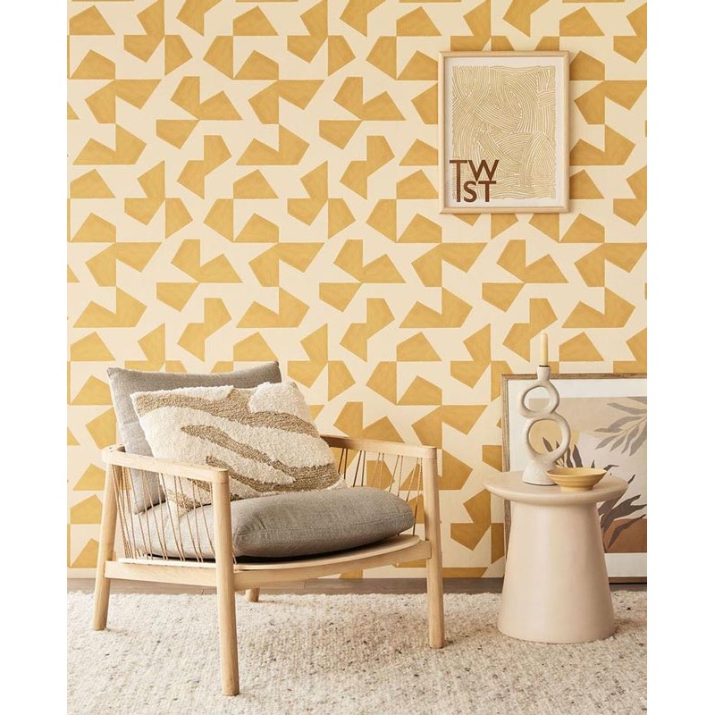 Papel pintado geométrico abstracto rosa naranja retro de Eijffinger, colección Twist. Medidas: 52 cm x 10 m. Papel de pared tejido no tejido y lavable.