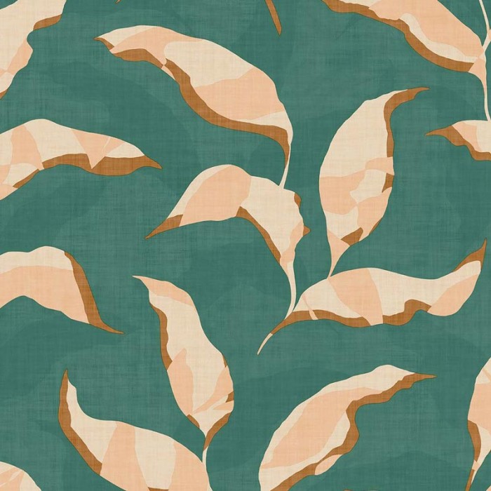 Papel pintado hojas abstractas beige arena de Eijffinger, colección Twist. Medidas: 52 cm x 10 m. Papel de pared tejido no tejido y lavable.