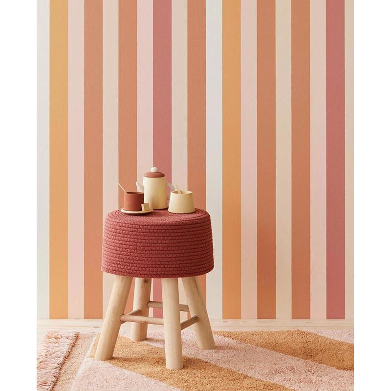 Papel pintado rayas multicolor infantil de Eijffinger, colección Explore. Medidas: 52 cm x 10 m. Papel de pared tejido no tejido y lavable.