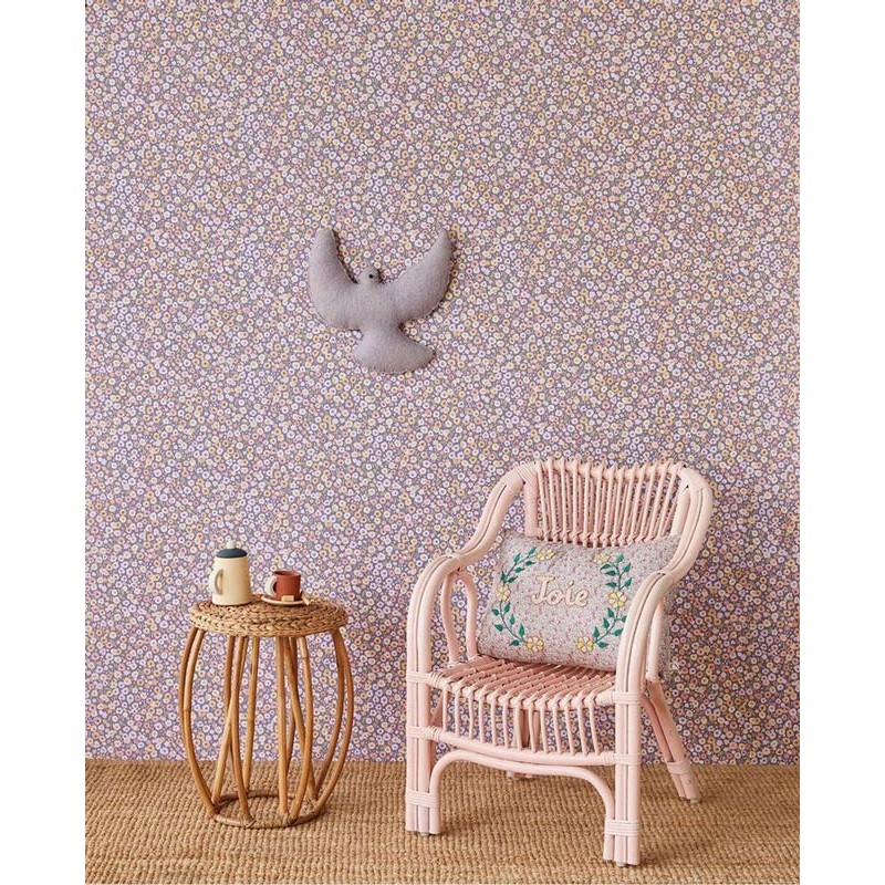 Papel pintado infantil flores silvestres rosa blanco de Eijffinger, colección Explore. Medidas: 52 cm x 10 m. Papel de pared tejido no tejido y lavable.