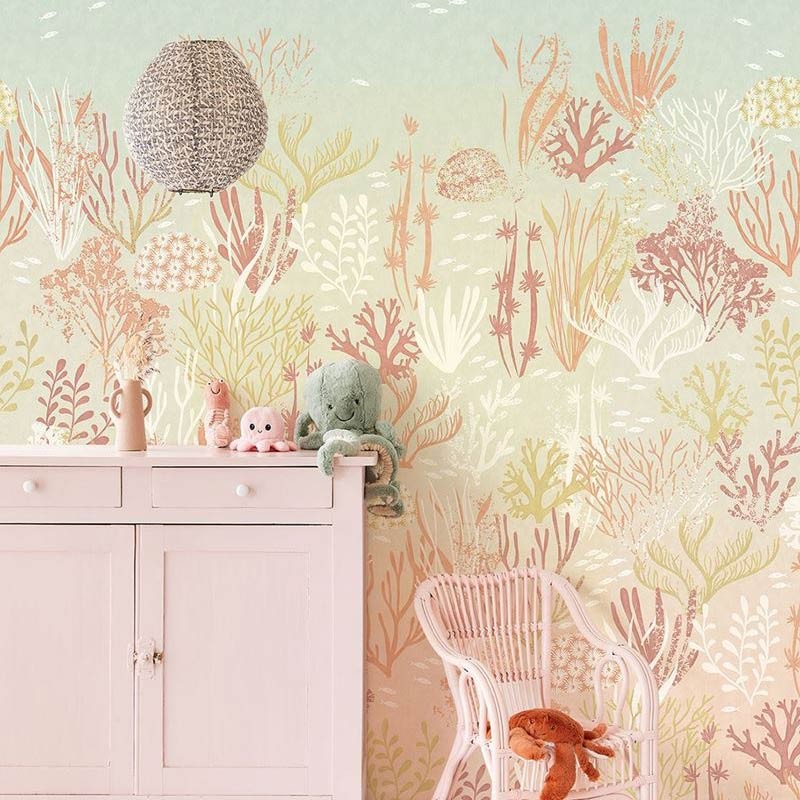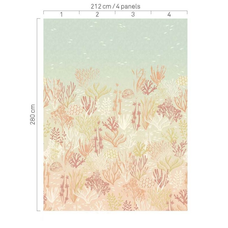Mural de pared infantil mundo submarino de los corales de Eijffinger, colección Explore. Medidas: 212 x 280 cm