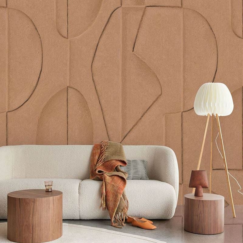Mural de pared figura tallada en muro arcilla estilo minimalista beige/arena de Eijffinger, colección Artifact. Medidas: 212 x 280 cm